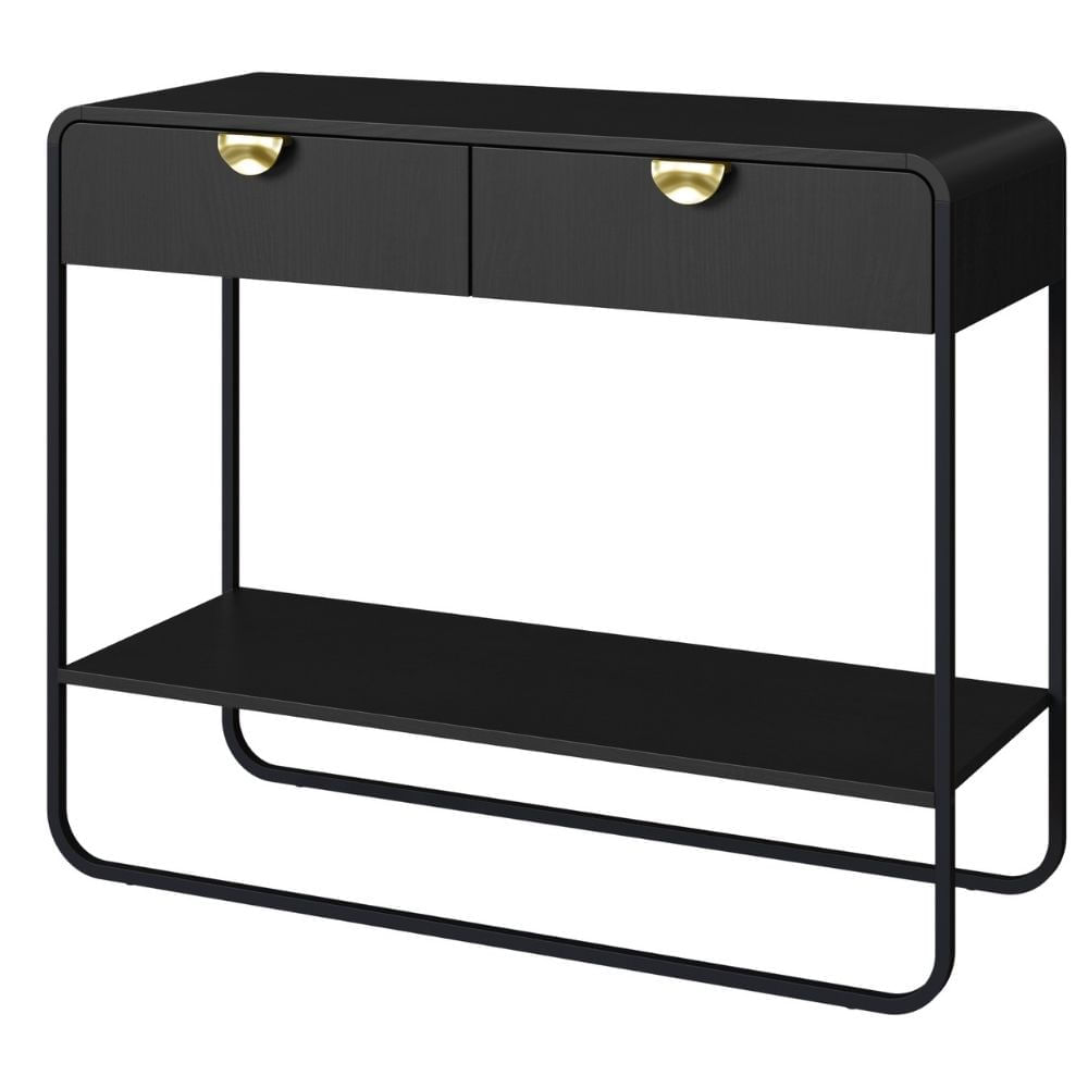 Aparador Orgânico Luna Artesano 100 cm (larg) MDP Nero 2 Gavetas 1 Prateleira Base Metal Preto