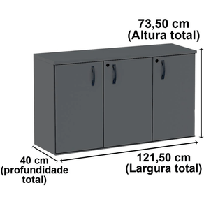 Armário Baixo Credenza PE25 Pandin 121,50 cm (largura) em MDP Cor Grafito com Três Portas