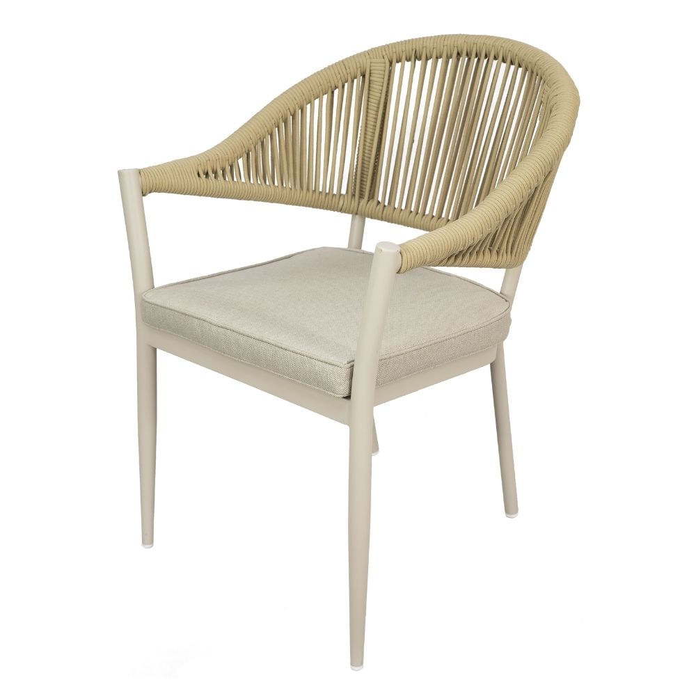 Cadeira com Braço Área Externa Juna Or Design Polipropileno Preto Encosto Corda Ratan Sintético Bege