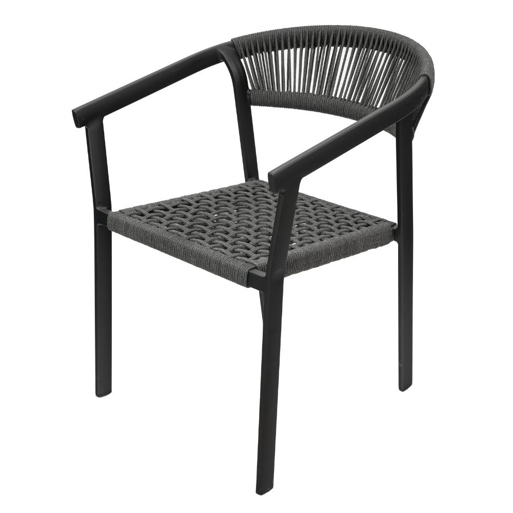 O assento e encosto em trama de corda náutica proporcionam excelente conforto e ventilação, além de alta resistência à umidade e às variações climáticas, sendo uma escolha perfeita para áreas externas elegantes e funcionais.