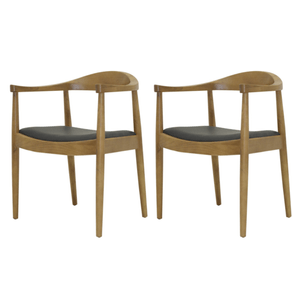 Kit 2 Cadeiras com Braços Carolina Rivatti Estrutura Madeira Natural Revestimento Poliuretano (PU)
