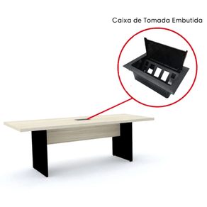 Mesa de Reunião com Caixa de Tomada Retangular 260 x 120 cm Pé Painel PE25 MDP Cinza Base Preta