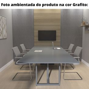 Mesa de Reunião com Caixa de Tomada Retangular 260 x 120 cm Pé Painel PE25 MDP Cor Grafito