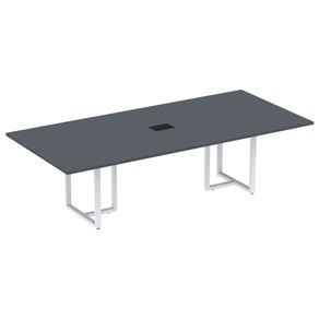 Mesa de Reunião com Caixa de Tomada Retangular 260 x 120 cm Pé Tubular PE25 MDP Grafito Base Branca
