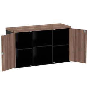 Armário Baixo Credenza PE40 Pandin 121,50 cm (largura) em MDP Cor Walnut e Preto Dois Nichos e Duas Portas
