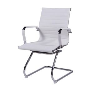 Cadeira Office Esteirinha em PU Branco Base Fixa Cromada