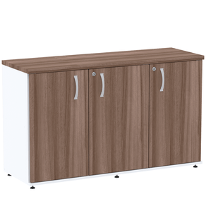 Armário Baixo Credenza PE25 Pandin 121,50 cm (largura) em MDP Cor Walnut e Branco com Três Portas