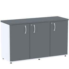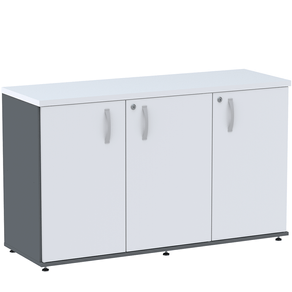 Armário Baixo Credenza PE25 Pandin 121,50 cm (largura) em MDP Cor Branco e Grafito com Três Portas
