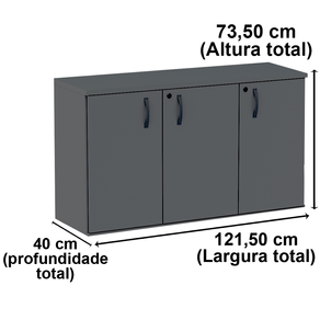 Armário Baixo Credenza PE25 Pandin 121,50 cm (largura) em MDP Cor Preto e Grafito com Três Portas