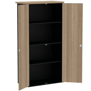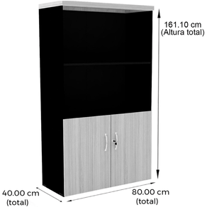 Armário Misto PE40 Pandin 80 cm (largura) em MDP Cor Noce Naturalle e Preto Duas portas e Prateleira superior