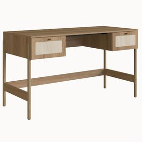 Escrivaninha Oslo Artesano 139 cm (largura) em MDP Palha Sintética Cor Mel Base Madeira