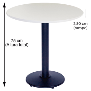 Mesa Zeta Ferro Branco 75 cm (Alt) Disco Redondo Tampo MDP Redondo 60 cm Larg x 2,5 cm Alt Castanheira
