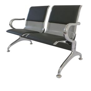 Longarina 2 Lugares NR-17 Dubai Fratini 116 cm (larg) Aço Carbono, Cromado e Pintura Cinza c/ Braços
