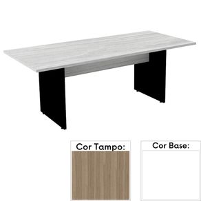 Mesa de Reunião Retangular 260 x 120 cm Pé Painel PE25 em MDP Cor Noce Naturalle Base Preta