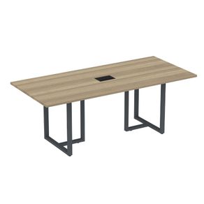 Mesa de Reunião com Caixa de Tomada 200 x 90 cm Pé Tubular PE25 MDP Noce Naturalle Base Grafito
