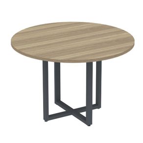 Mesa de Reunião Redonda P25 Pandin 110 cm (Largura) Tampo MDP Noce Naturalle Pé Aço Tubular Grafito
