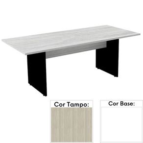 Mesa de Reunião Retangular 200 x 90 cm Pé Painel PE25 em MDP Cor Nogueira CasaBlanca e Base Branca