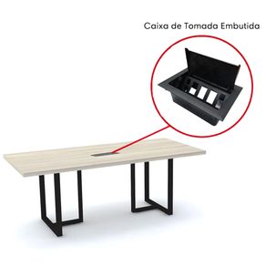 Mesa de Reunião com Caixa de Tomada 260 x 120 cm Pé Tubular PE25 MDP Nogueira CasaBlanca Base Preto