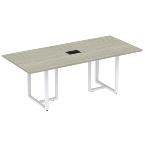 Mesa de Reunião com Caixa de Tomada Retangular 200 x 90 cm Pé Tubular PE25 em MDP Nogueira CasaBlanca e Base Branca