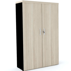 Armário Alto PE40 Pandin 80 cm (largura) em MDP Cor Nogueira CasaBlanca e Preto com Duas Portas