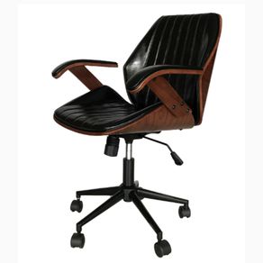 Cadeira Giratória Saragoça Rivatti Madeira Multilaminada Revestida em Poliuretano Preto Base Rodizio