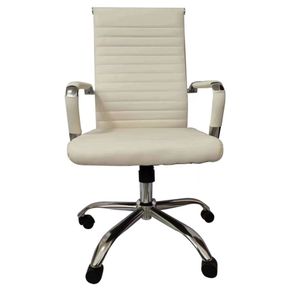 Cadeira Giratória Office Esteirinha Confort Rivatti em PU Branco Base Rodízio Cromado