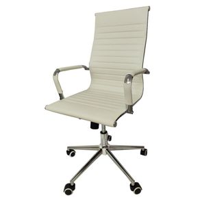 Cadeira Giratória Alta Office Esteirinha Rivatti em PU Branco Base Rodízio Cromado