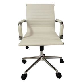 Cadeira Giratória Baixa Office Esteirinha Rivatti em PU Branco Base Rodízio Cromado