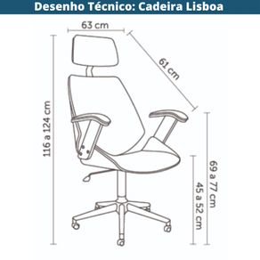 Cadeira Giratória Lisboa Bergen Rivatti c/ Encosto de Cabeça Madeira Laminada PU Preto Base Rodízio