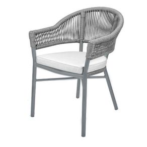 Cadeira Empilhável Oliveta Rivatti 57 cm (Largura) Estrutura em Alumínio Areia e Corda Náutica Cinza