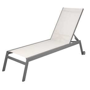 Espreguiçadeira Jeri Fratini 191 cm (largura) em Alumínio e Assento em Tela Cor Cinza com 2 Rodinhas