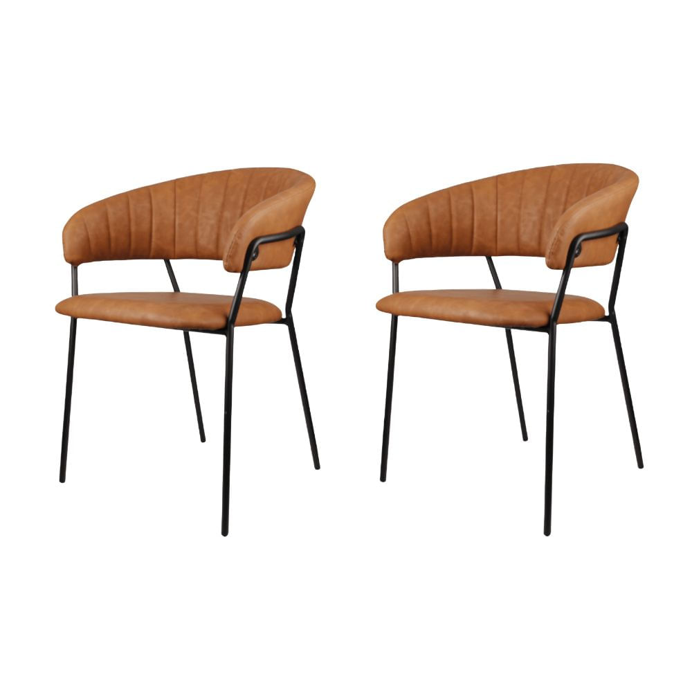 Kit 2 Cadeira Bruna Rivatti Poliuretano (PU) Caramelo Pés em Aço