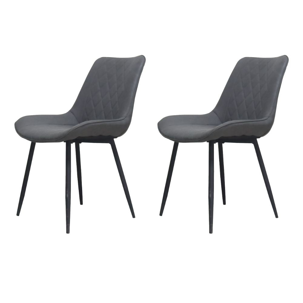 Kit 2 Cadeiras Alicia Rivatti Estofada em Poliuretano (PU) Caramelo e Cinza Escuro Base em Aço
