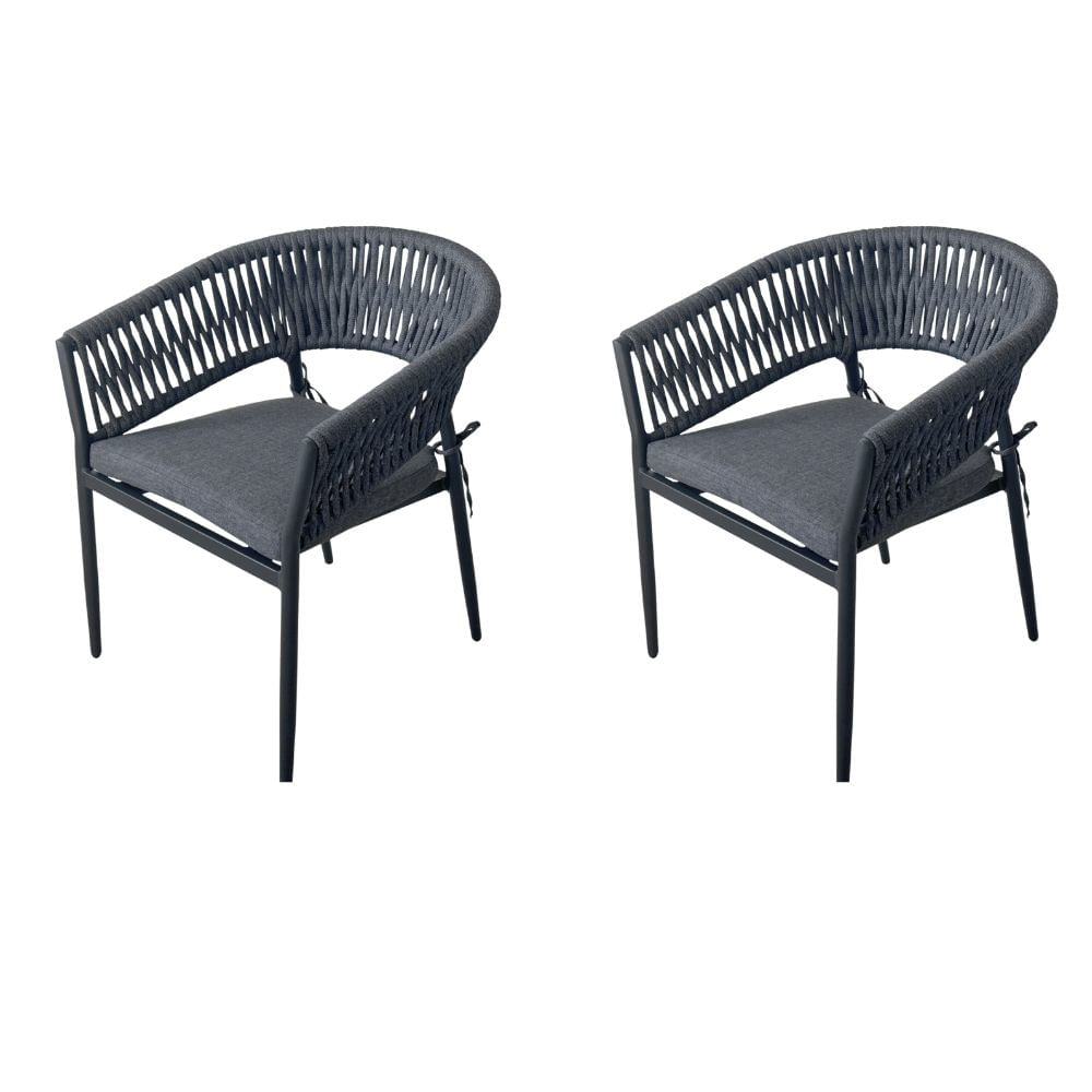 Kit 2 Cadeiras Ravello Caraíva Fratini Encosto Corda Náutica Assento AcquaBlock Base Alumínio Grafit