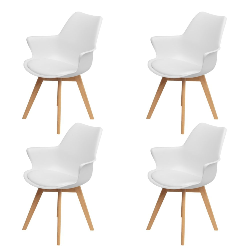 A estrutura conta com base em madeira, que traz um toque natural e sofisticado ao ambiente, além de proporcionar excelente estabilidade e resistência. Os braços integrados ao design aumentam o conforto e tornam a cadeira perfeita para salas de jantar, escritórios, recepções ou espaços gourmet.