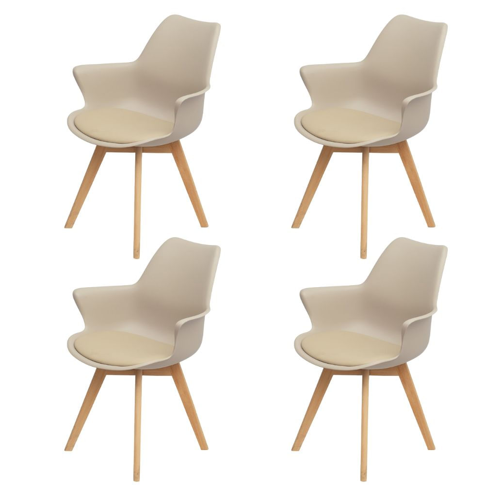 A estrutura conta com base em madeira, que traz um toque natural e sofisticado ao ambiente, além de proporcionar excelente estabilidade e resistência. Os braços integrados ao design aumentam o conforto e tornam a cadeira perfeita para salas de jantar, escritórios, recepções ou espaços gourmet.