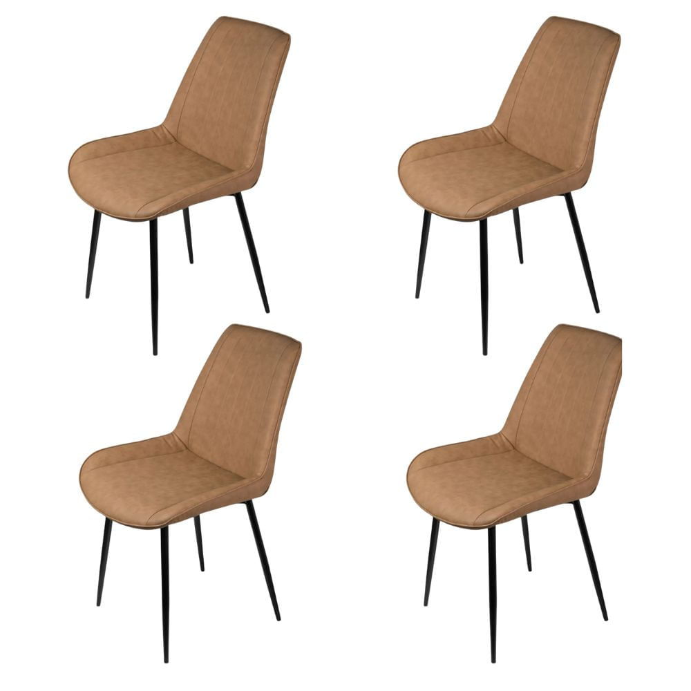 O assento e encosto são revestidos em PU na cor café, material que oferece toque macio, conforto no uso diário e facilidade na limpeza. Sua base em metal garante maior resistência, estabilidade e longa durabilidade, além de proporcionar um visual contemporâneo que valoriza a decoração do ambiente.