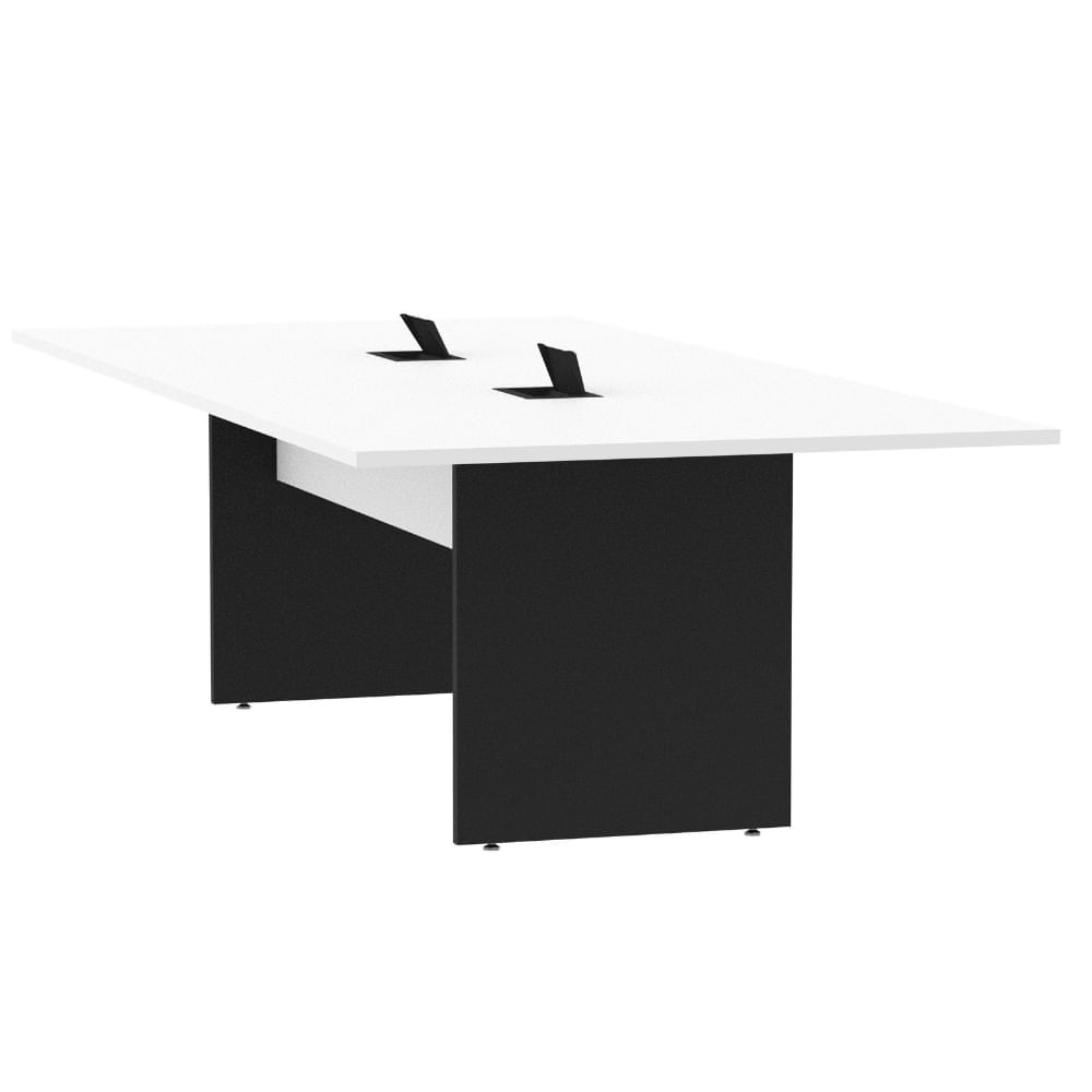 Mesa de Reunião com Caixa de Tomada Retangular 260 x 120 cm Pé Painel PE25 em MDP Cor Branco
