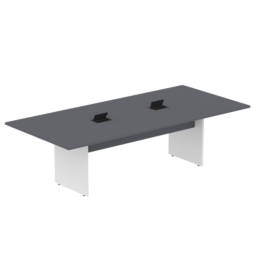 Mesa de Reunião com Caixa de Tomada Retangular 260 x 120 cm Pé Painel PE25 em MDP Walnut Base Branco