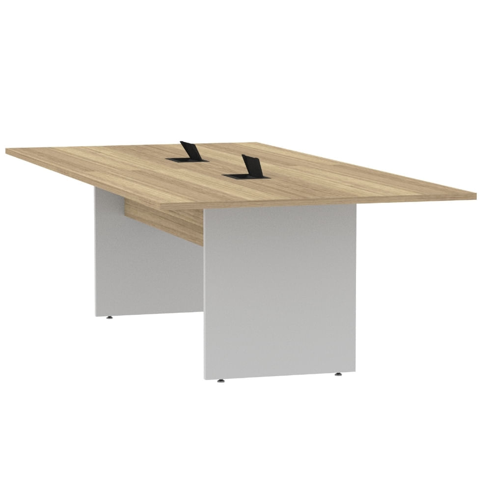 Mesa de Reunião Retangular 260 x 120 cm Pé Painel PE25 em MDP Cor Noce Naturalle Base Preta