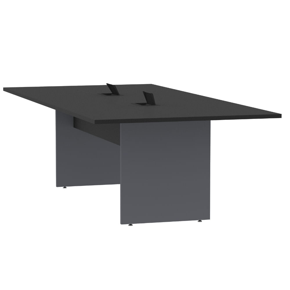 Mesa de Reunião com Caixa de Tomada Retangular 260 x 120 cm Pé Painel PE25 MDP Cinza Base Preta