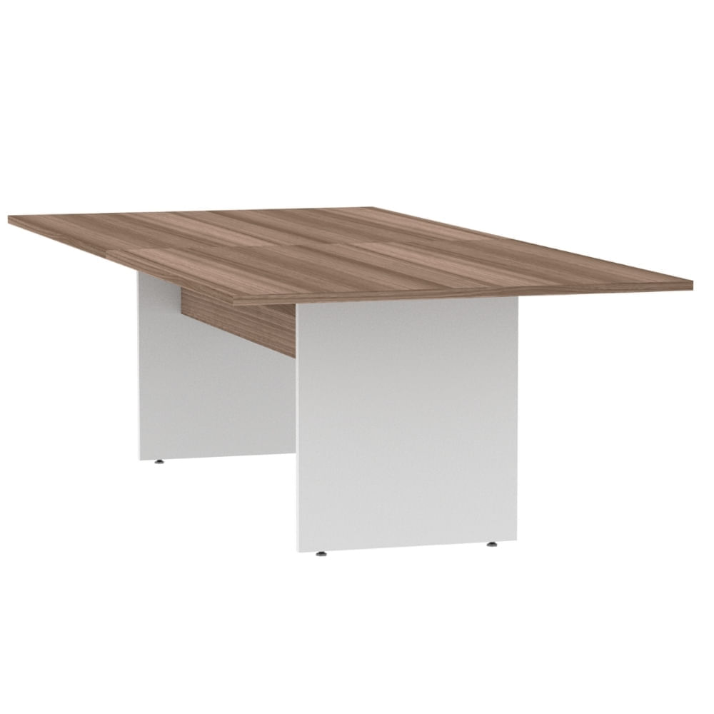 Mesa de Reunião com Caixa de Tomada Retangular 260 x 120 cm Pé Painel PE25 MDP Noce Naturalle Branco