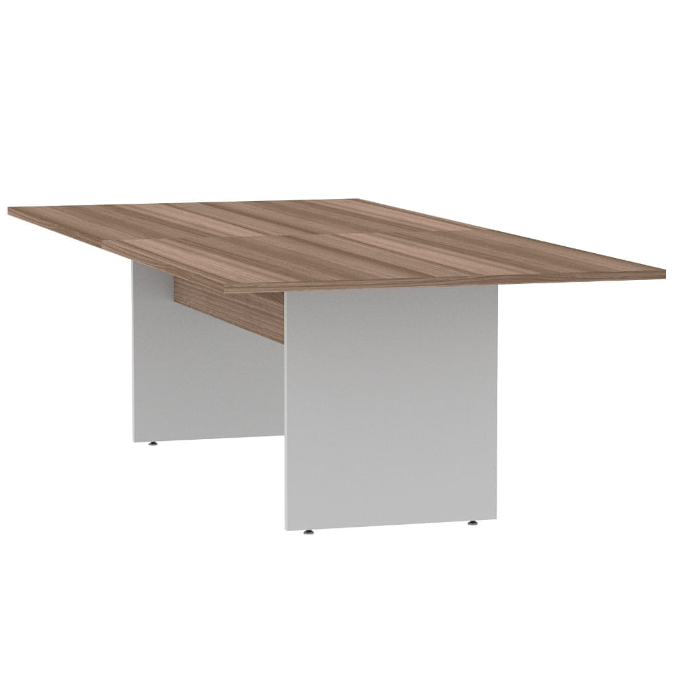 Mesa de Reunião Retangular 260 x 120 cm Pé Painel PE25 em MDP Cor Noce Naturalle Base Branca