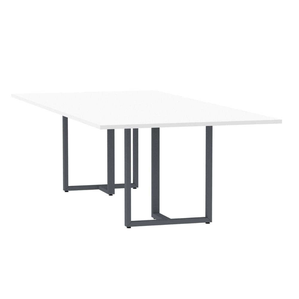Mesa de Reunião Retangular 260 x 120 cm Pé Tubular PE25 em MDP Cor Cinza Base Cinza