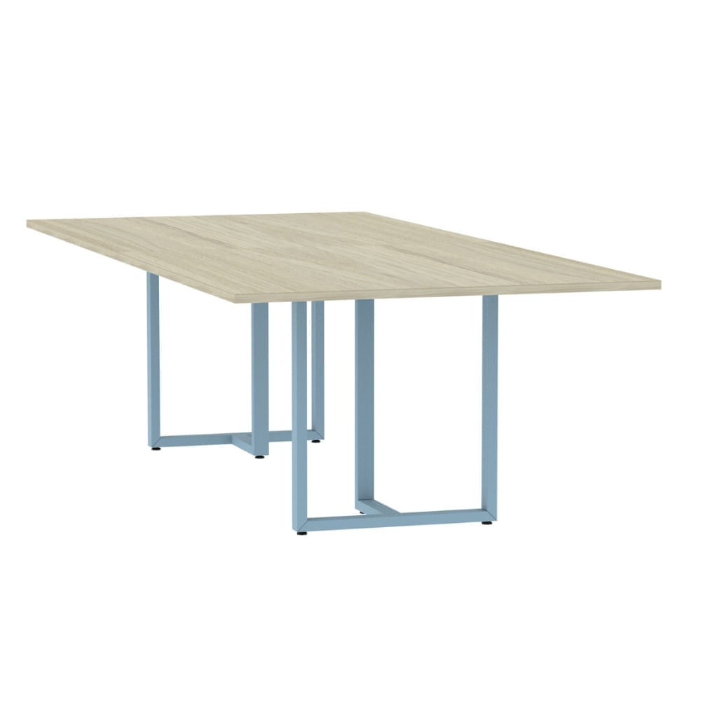 Mesa de Reunião Retangular 260 x 120 cm Pé Painel PE25 em MDP Cor Cinza Base Cinza