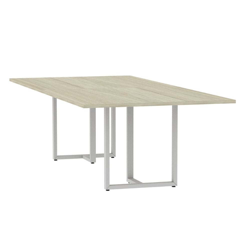 Mesa de Reunião Retangular 260 x 120 cm Pé Tubular PE25 em MDP Cor Cinza Base Preta