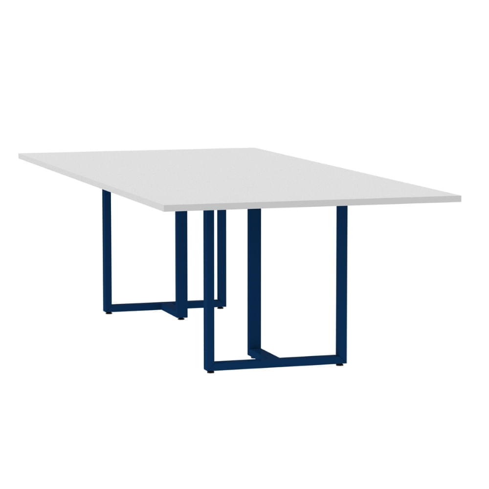 Mesa de Reunião Retangular 260 x 120 cm Pé Tubular PE25 em MDP Cor Nogueira CasaBlanca Base Branca
