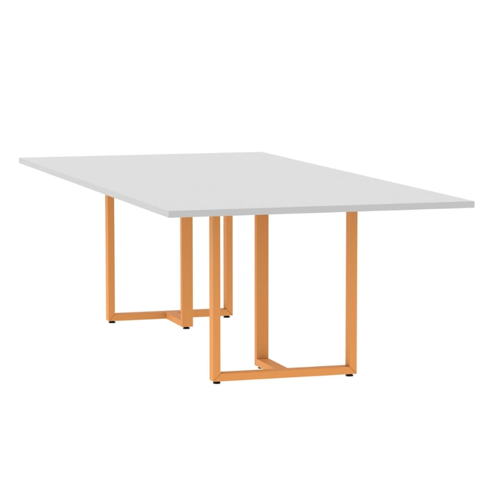 Mesa de Reunião Retangular 260 x 120 cm Pé Tubular PE25 em MDP Branca Base Branca