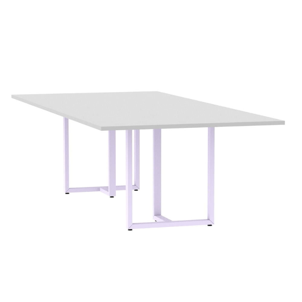 Mesa de Reunião Retangular 260 x 120 cm Pé Painel PE25 em MDP Branca Base Branca