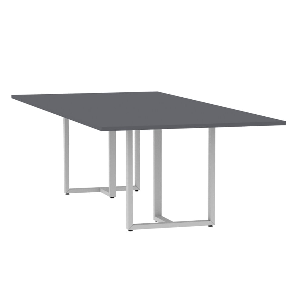 Mesa de Reunião Retangular 260 x 120 cm Pé Tubular PE25 em MDP Cor Cinza Base Preta